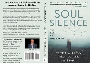 "Soul Silence: The Path of Awakening" is a transformative guide by Peter Amato, Ph.D, DNM, that illuminates the universal journey toward spiritual awakening through meditation, mindfulness, and self-discovery. While drawing from Amato's personal recovery from addiction, this book transcends recovery literature to offer profound wisdom for anyone seeking deeper meaning, connection, and inner peace.